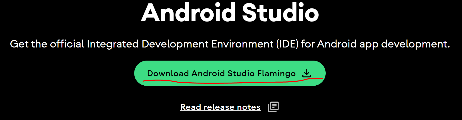 Download Android Studio Flamingo 클릭 후 하단의 링크에 나오는 영상에 맞춰 선택사항을 조정하시면 됩니다.