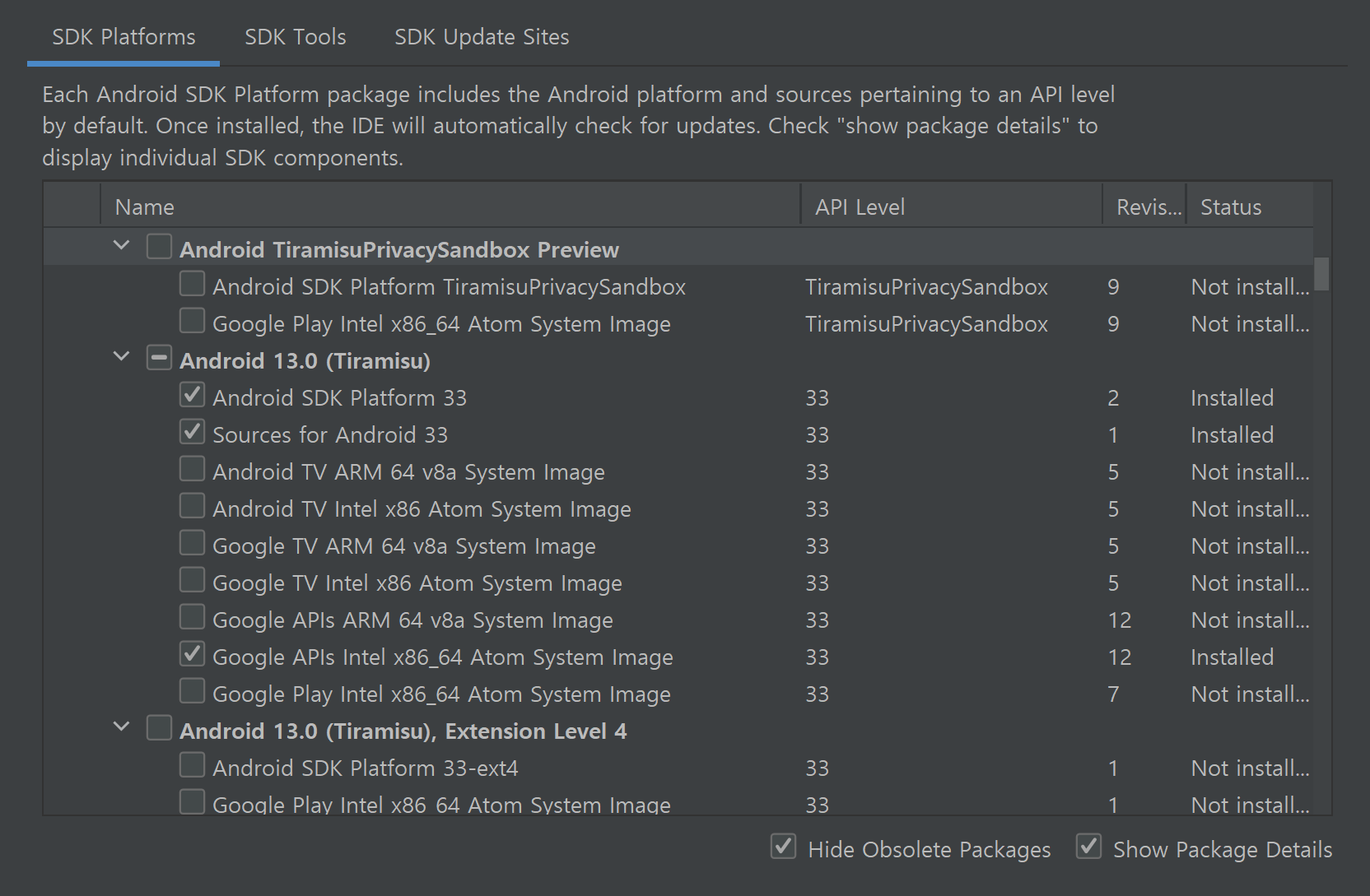 버전 : Native CLI 0.72 , Node 16.17.0 (16버전 이상 必), JDK 17.0.4.1 (11버전 이상 必), Android Studio 22, SDK 33 (Android 13.0 - Tiramisu 必)