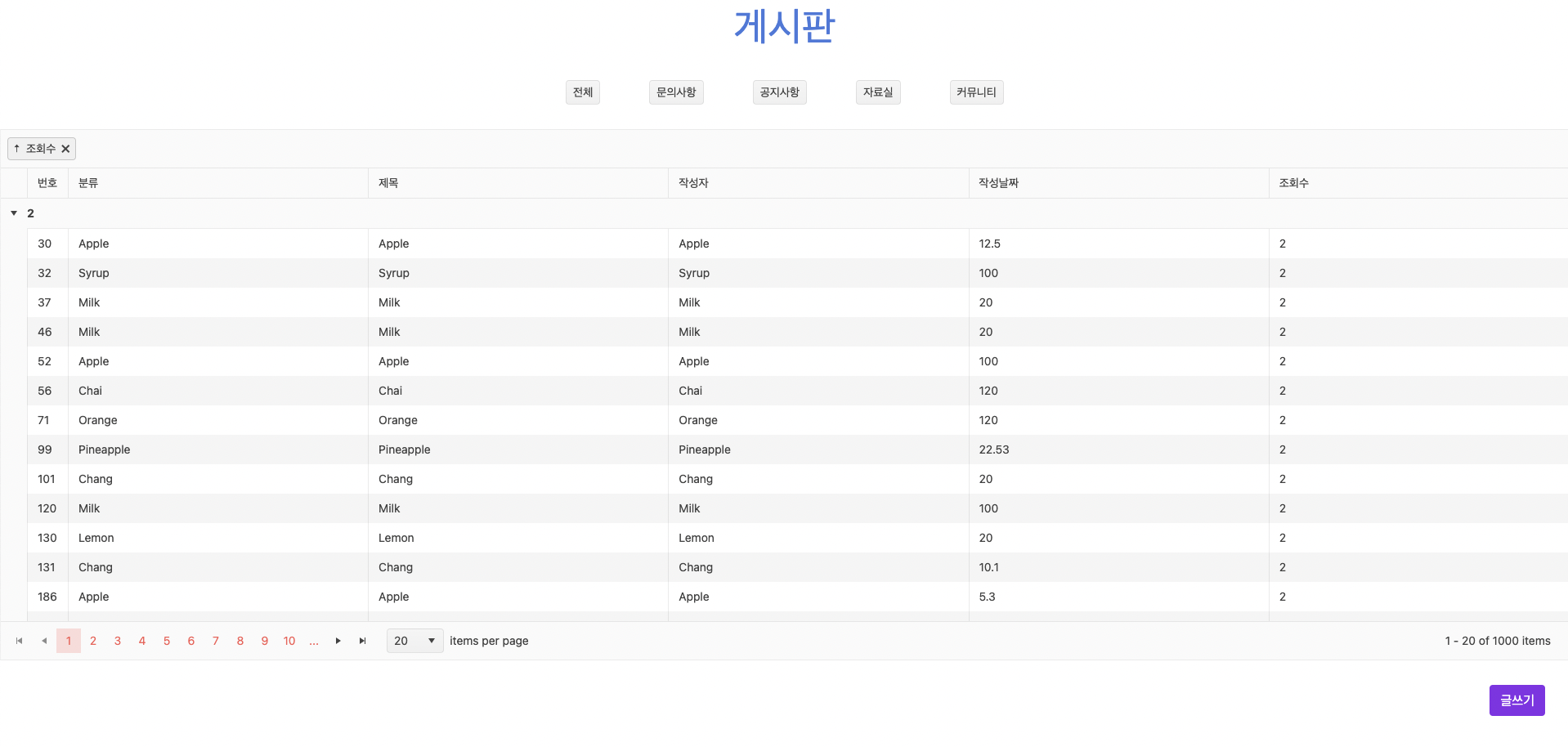 이건 kendo ui의 그리드를 사용해서 구현한 게시판 프론트 입니다! (미완성)