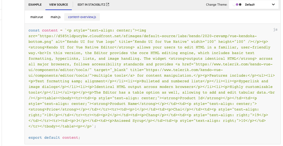 import { Editor } from "@progress/kendo-vue-editor";