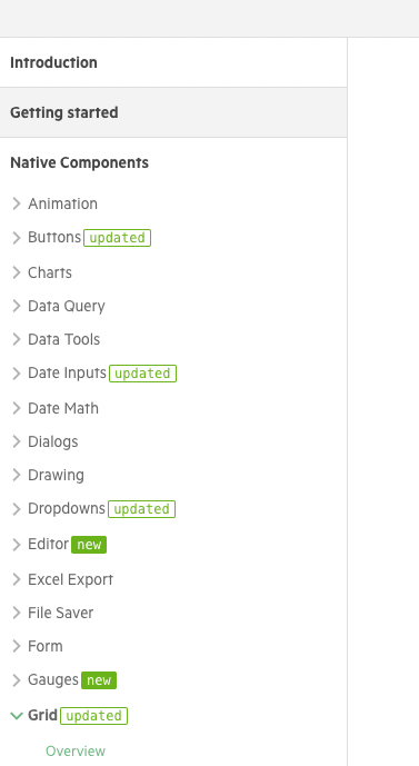 그 후 밑줄 그어진 부분에 Data Grid / Chart 등등 이중에 하나를 클릭 한 뒤 왼쪽 보기중에 Getting started를 클릭해 주세요!