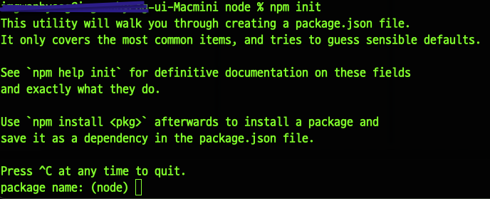 터미널을 열어준 뒤 원하는 디렉토리에 파일을 생성해서 npm init을 해줍니다.