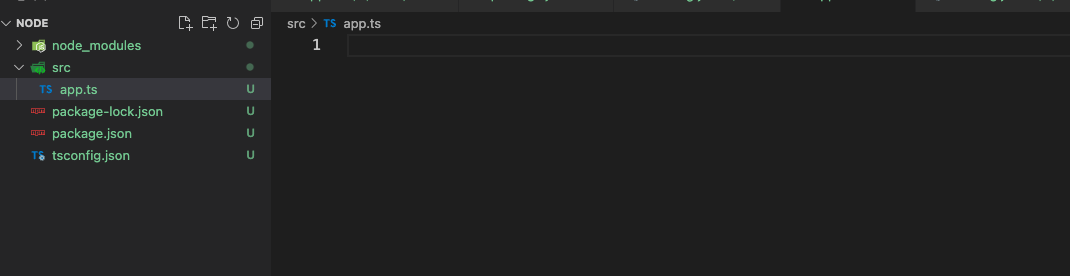 그리고 src 폴더를 만들어 준 뒤 그 안에 app.ts 파일을 만들고 아래 내용을 적어주세요 ~