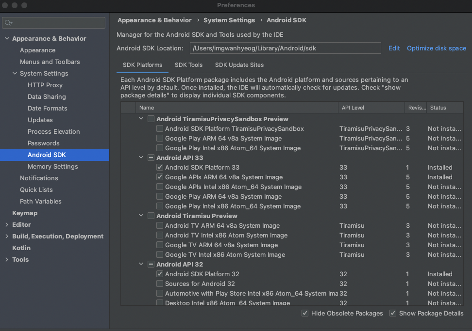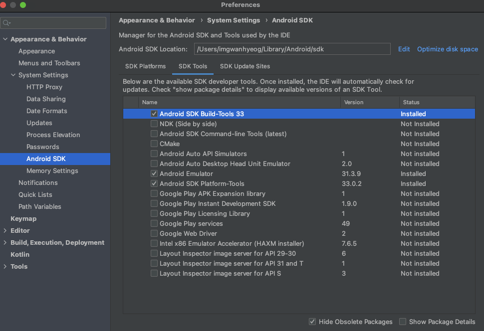 Using Android SDK: /Users/imgwanhyeog/Library/Android/sdk